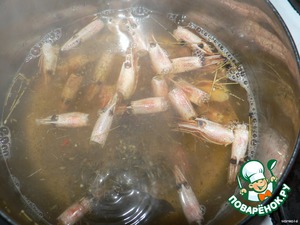 За это время почистите креветки - оторвите головы и очистите хвост. Половину голов не выкидывайте. -