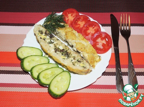 Запекать в духовке при 180 градусах 25-30 минут до румяной корочки. Подавать со свежими овощами и зеленью.