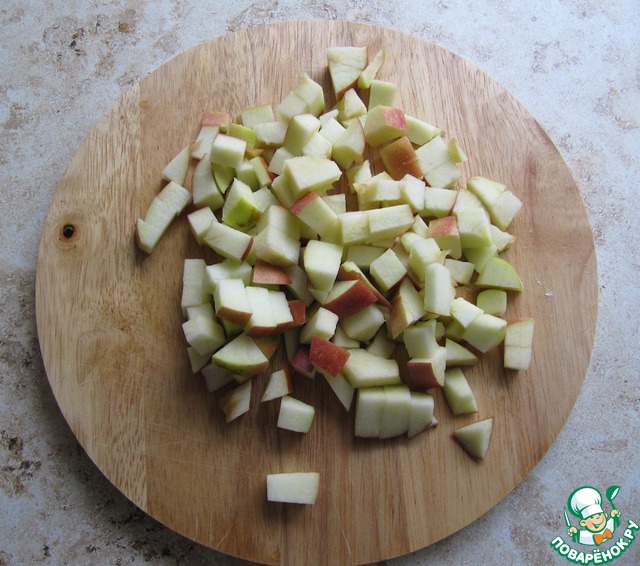 У яблока вычистить сердцевину, порезать кубиком.