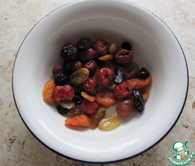Горсть сухофруктов вымыть и обсушить.