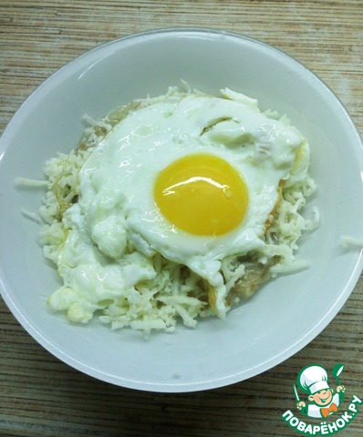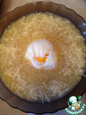 Предлагаю рецепт одного из любимых поздних воскресных завтраков моих мужчин - это вкусно и очень сытно, при этом и очень полезно. Скушав такую порцию, можно зарядиться силами на целый день. Угощайтесь! Рецепт был давненько позаимствован у arx0nt, много раз приготовлен и съеден. Есть кашу нужно немедленно, пока все горячее и ароматное, а сыр неумолимо греется и плавится между овсянкой и яичницей, затем тянется тонким нитями за ложкой.