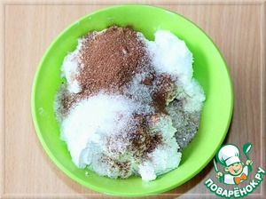 Приготовим творожную начинку для булочек: смешайте творог с сахаром (по вкусу) и добавьте корицу.