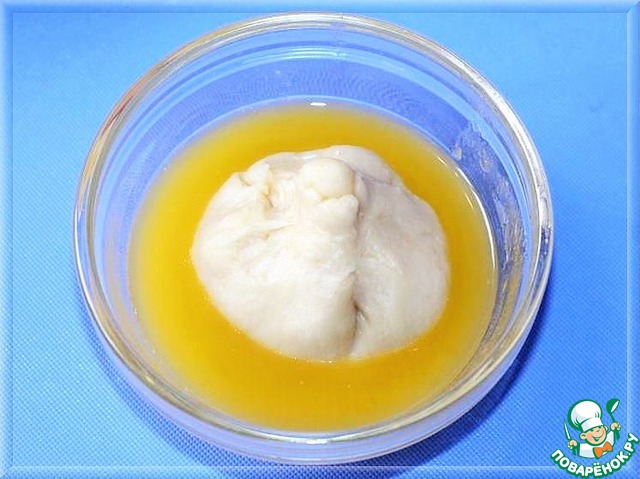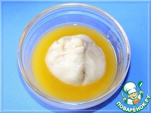 Каждую булочку макаем в растопленное сливочное масло (100 гр). Масло здесь нужно для того, чтобы булочки не слиплись, если при выпечке прикоснуться.