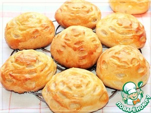 Смажьте взбитой желтковой смесью верх булочек. Выпекайте булочки в хорошо разогретой до t 200 С духовке 20 минут, пока не зарумянятся.