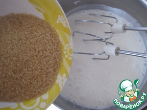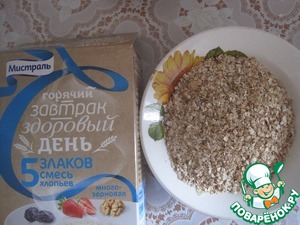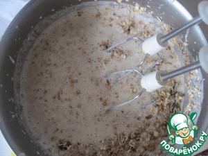 Вводим предварительно обжаренные овсяные хлопья. Я использовала 5 злаков смесь хлопьев