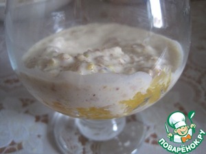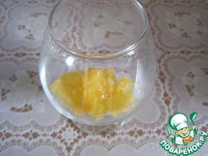 Наливаем часть смузи, затем апельсины, смузи, апельсины, смузи