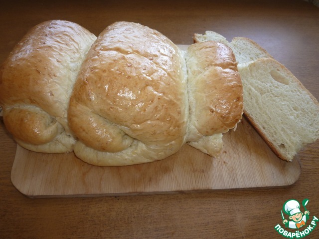 Теперь займемся формовкой хлебушка. Тесто разделить на три части и раскатать квадратом. Далее каждый квадрат сложить втрое (как на картинке), сверху пройтись слегка скалкой и свернуть рулетиком. Получившиеся три рулетика уложите в форму для выпечки хлеба, накройте пленкой и уберите в тепло на 30-40 мин.