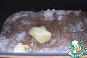 Закладываем все продукты согласно инструкции к Вашей ХП. Если у Вас нет ХП: просеем муку, смешаем ее с отрубями, сухим молоком, солью и сахаром. В небольшое количество теплой воды (35°С) добавим дрожжи и перемешаем. В сухих ингредиентах сделаем углубление и выльем дрожжи с водой. Перемешаем. Постепенно добавляем оставшуюся воду. Вымесить эластичное тесто. Добавить мягкое сливочное масло и еще раз вымесить тесто. Убрать в теплое место на расстойку (часа на 1,5 - 2). Затем сформировать булку хлеба, поставить в теплое место еще на 30-40 мин. Выпекать в духовке до готовности (при 180°С).