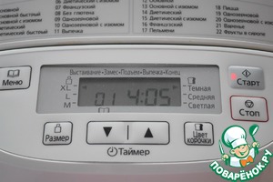 Выбираем программу "Основной хлеб", размер булочки - XL (в моей ХП это примерно на 700г муки), цвет корочки - по желанию.