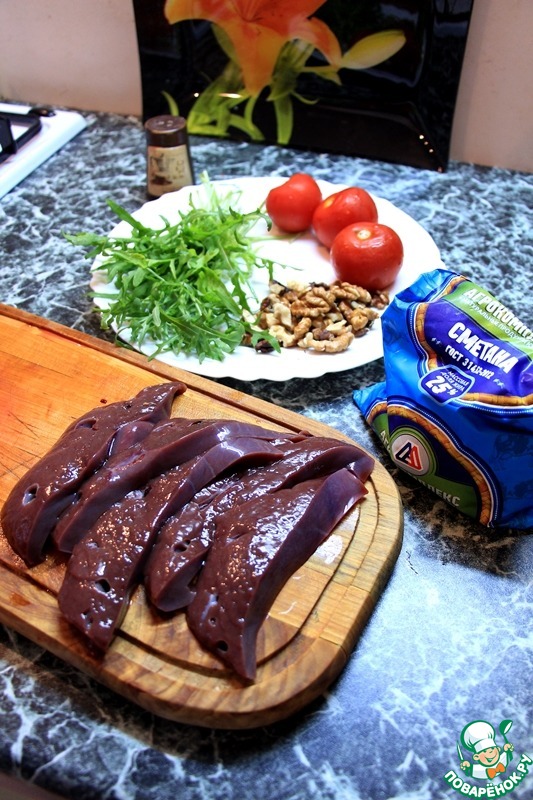 Ингредиенты для «Салат с говяжьей печенью и рукколой»: