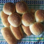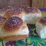 Тесто нужно раскатать в толстый жгут и разделить на небольшие кусочки. Я делаю полпорции, у вас получится больше кусочков. Из каждого кусочка руками скатать шарик и разложить в форму на небольшое расстояние друг от друга. Форму накройте пленкой и поставьте в теплое место на пол часа. По истечении времени наши шарики подрастут. Яйцо взбить (можно добавить 0,25 ч. л. сахара для более румяной корочки) и обмазать наш хлеб. Выпекать в заранее разогретой духовке 25 минут при температуре 180 градусов. По истечении времени достать из духовки наш картофельный хлеб и укутать в полотенце. Для блеска хлеб можно слегка смазать растительным маслом. Дать остыть хлебушку минут 20 и можно подавать к столу.