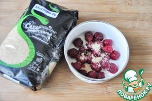 Берём замороженную вишню, а по сезону свежую. Засыпаем сахаром универсальным от "Мистраль", нагреваем на медленном огне, чтобы вишня растаяла и пустила сок, по желанию добавляем ликёр. Не бойтесь, если печенье для детей, алкоголь полностью улетучится. -