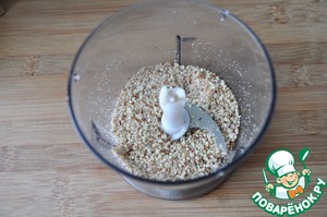 Предварительно измельчаем в мелкую крошку подсушенный миндаль.