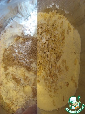 В муку добавляем отруби, овсяные хлопья, паприку и сухие дрожжи