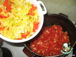 Болгарский перец и помидоры нарезать мелко.