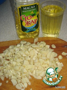Добавить подсолнечное масло и чеснок.