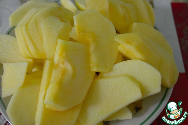 Яблоки вымойте, очистите и нарежьте ломтиками.