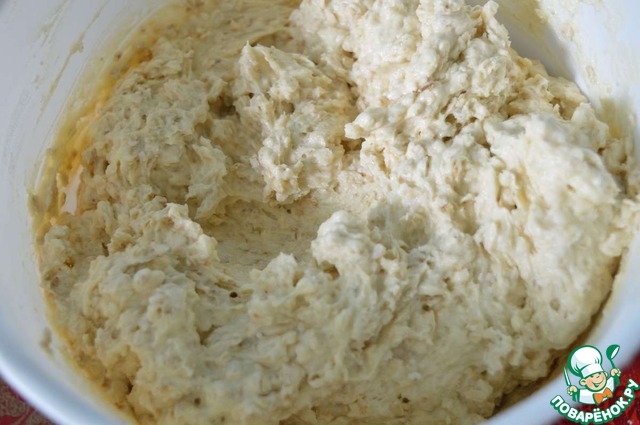 Соедините яичную массу с мукой и овсяными хлопьями и хорошо перемешайте.