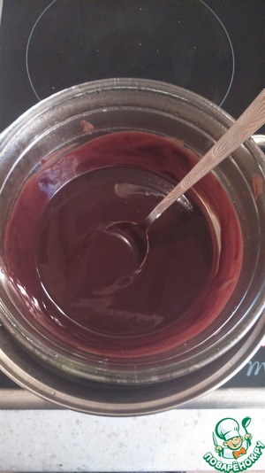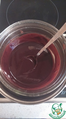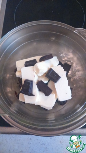 Растапливаем на водяной бане шоколад с маслом, перемешиваем и даем немного остыть.