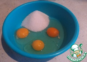 В другой емкости соединяем творог, 1 яйцо, 50 граммов сахара, ванильный сахар. Взбиваем миксером.