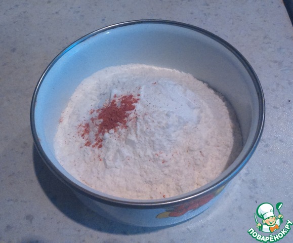 В отдельной емкости соединяем муку, соль, разрыхлитель и перец.