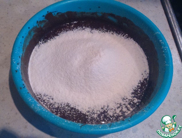 Очень странно, что шоколадная часть была жидкая. У меня обычно она гуще, особенно остывая))) Муку точно в граммах отмеряли, а не в мл?