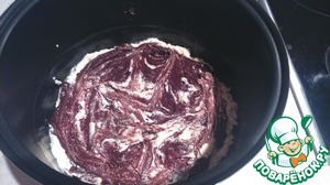 Не прекращая взбивать, вливаем туда шоколадную смесь. -