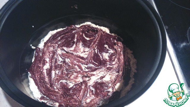 Консистенция у шоколадной и творожной смеси должна быть примерно одинаковой.
