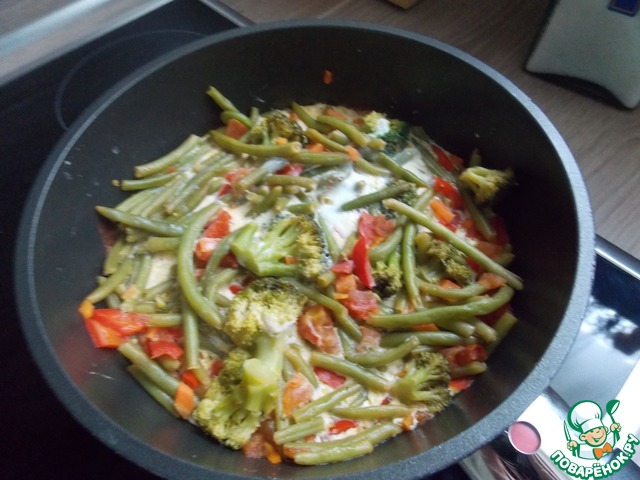 • Через 10 мин, может и раньше, открываем крышку и смотрим как там наши овощи. Вода должна полностью испариться, а овощи почти готовы.