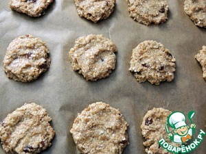 На противень, застеленный бумагой, выкладываем по 1 ст. л. теста и приминаем.
