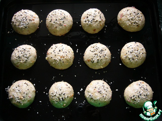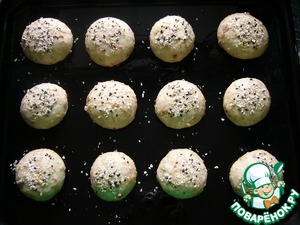Перед выпечкой смазать водой и посыпать смесью отрубей с кунжутом. Выпекать в предварительно разогретой духовке при 180 градусах 15- 20 минут (ориентируйтесь по своей духовке). Готовые булочки накрыть полотенцем на 10 минут.