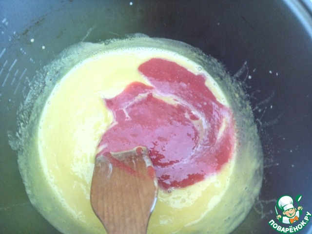 4 желтка смешиваем с сахаром (100г) и крахмалом (1ст. л.). Все смешиваем венчиком до однородности. Ставим на медленный огонь и варим, непрерывно помешивая. Когда масса начнет густеть добавляем клубничное пюре и продолжаем варить до сгущения. В процессе варки клубничный цвет может смениться на коричневый, но Вы не пугайтесь вкус остается летний и свежий!