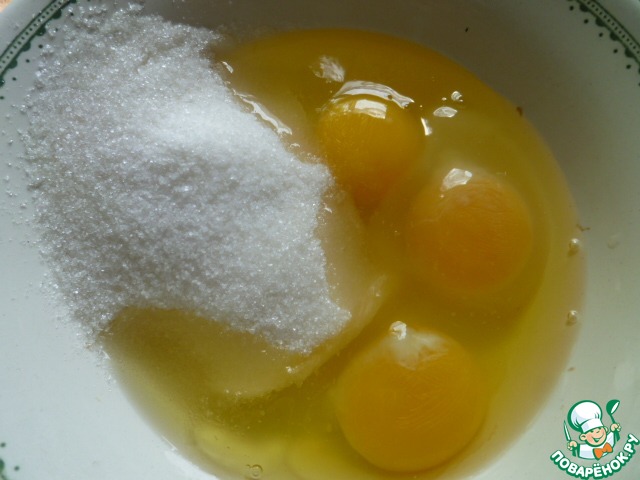 Для начала соединим яйца, сахар, соль и ванильный сахар.