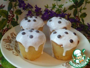 Как и украшала белковой глазурью и шоколадными каплями... Могла бы и посыпкой, так было бы праздничнее и наряднее, но мой маленький дегустатор сейчас болеет и ей нельзя посыпку... Всего лишь простуда, но на фоне лекарств может быть аллергия. Но с каплями тоже красиво и очень вкусно...