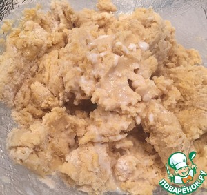 Сперва нужно замесить песочное тесто. Я смешиваю яичные желтки с сахарной пудрой, солью, добавляю размягчение масло. Быстро растираю и добавляю муку и 3 столовые ложки молока. Не вымешивайте долго. Придайте форму овала и в холодильник на 30 минут.