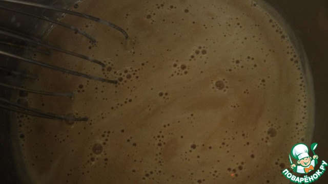 К сырной смеси добавить кофе и еще проварить секунд тридцать постоянно помешивая венчиком.