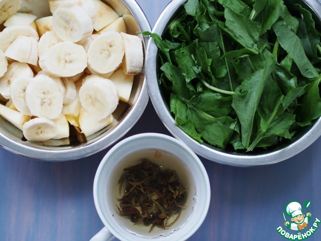 Приготовить необходимые продукты. Можно взять 2 банана. или 2 яблока, но фрукты лучше подобрать сладкого вкуса, т. к. щавель достаточно кислый.