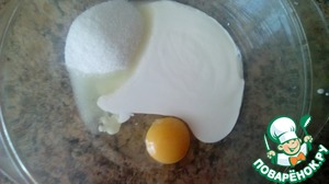 Отдельно взбить миксером 1 яйцо,4 ст. л. сметаны и 100 гр сахара.