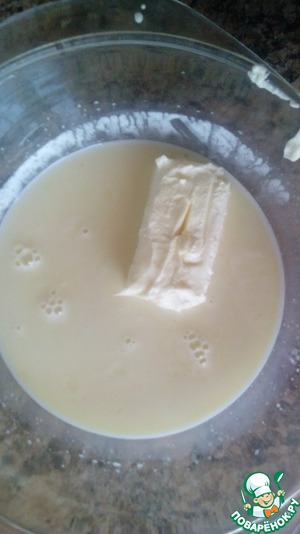 К этой массе добавить размягченное сливочное масло. И тщательно перемешать.