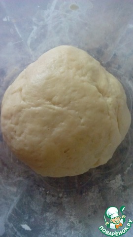 Добавить половину муки, и хорошенечко перемешать используя миксер. Затем добавить оставшуюся муку и замесить тесто. Тесто очень мягкое, к рукам не липнет (если добавили все правильно, никакой муки больше подмешивать не надо!)После раскатать тесто в пласт толщиной около 7 мм, вырезать кружочки диаметром около 10-12 см.