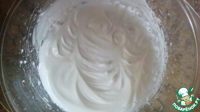 Для начинки действуем следующим образом:взбиваем 50 гр сахара с белком одного яйца до пышной пены.