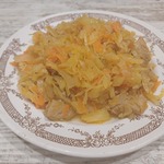Лично я пожарил все из рецепта, кроме капусты в сковородке. Капусту закинул в кастрюлю, залил содержимое сковородки, накидал сверху порезаную кубиком картошку, добавил томатную пасту, воду и оставил томиться на медленном огне под крышкой. Получилось вкусно.