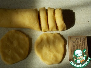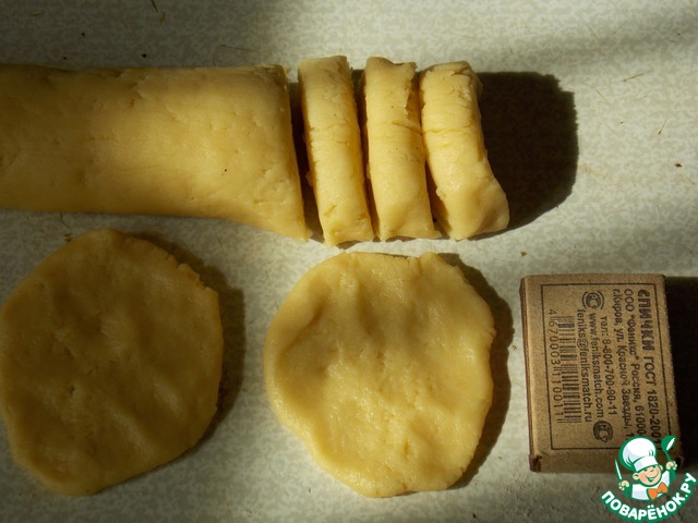 Но я предпочитаю более быстрый способ. Скатать тесто в тонкую колбаску и нарезать кружочки. -