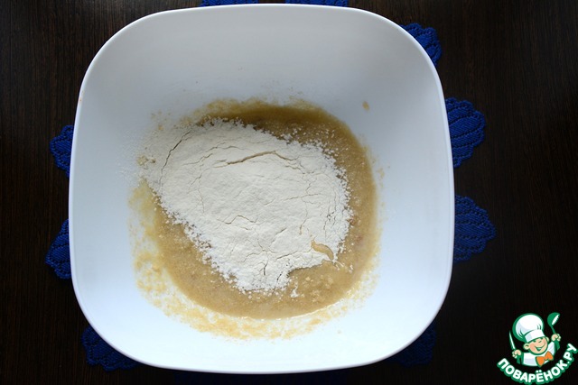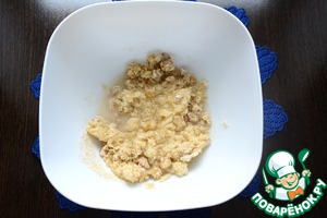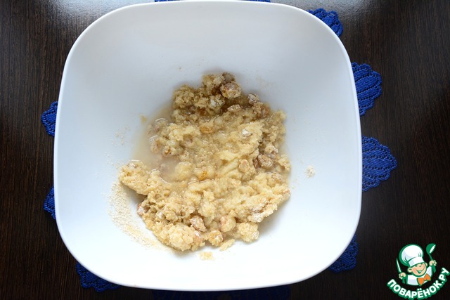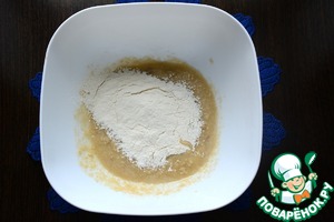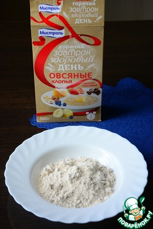 Овсяные хлопья перемолоть в муку и добавить в масляную смесь