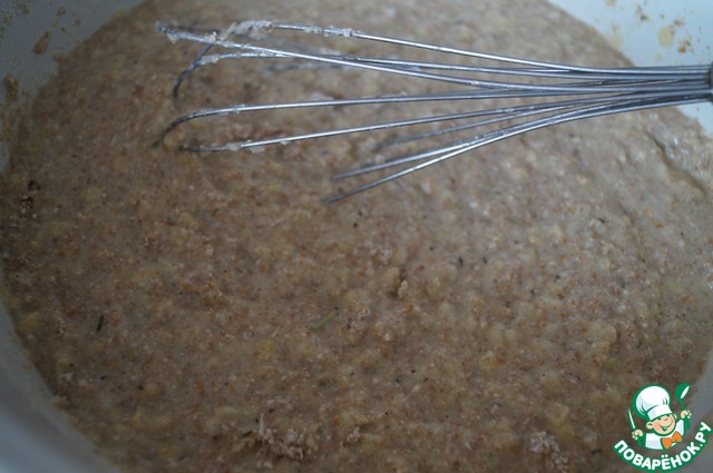 Добавляем сухие ингредиенты и аккуратно перемешиваем венчиком.