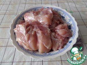 Отделяем мякоть от кости, убираем куриную кожу. ( Можно, конечно, взять готовый фарш, но фарш домашнего приготовления - лучше.)