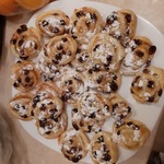 Крем после духовки напоминает сливочный сыр, изюм "сливается" с булочкой в единое целое, остановиться невозможно...