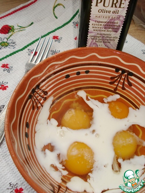 Разбейте яйца в миску, влейте молоко, посолите поперчите.