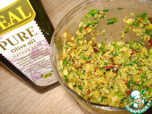 И, помешивая, доведем массу до золотистого состояния, добавим щепотку сахара для карамелизированной корочки и прованские травы.