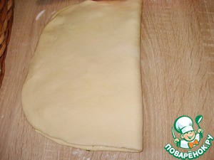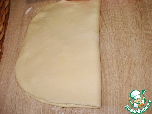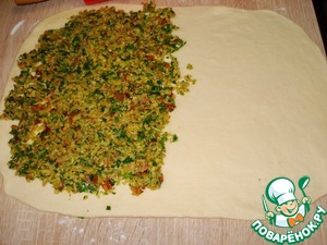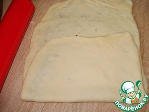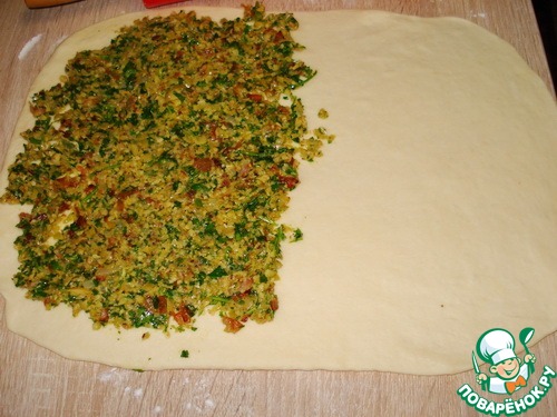 Подошедшее тесто раскатать в прямоугольник примерно 30х15.